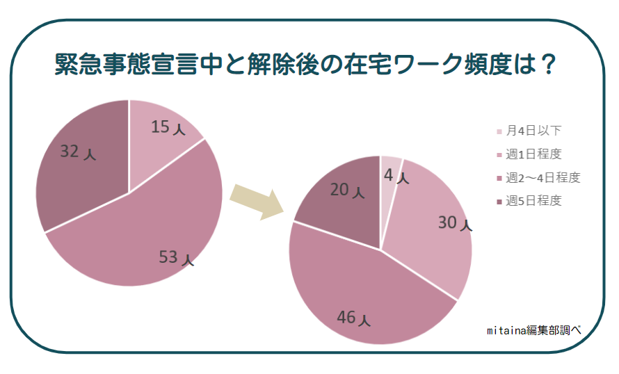 - 緊急事態宣言中と解除後の在宅ワークの頻度は?