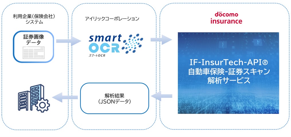これは2019年から複数の保険会社でご利用頂いている自動車保険証券スキャンサービス(If-InsurTech®自動車保険AIスキャン)から解析部分と共通コード化部分をAPI利用できるようにしたものです。現在はアイリックコーポレーション社のスマートOCRとAPI接続し、利用することが可能となっております。