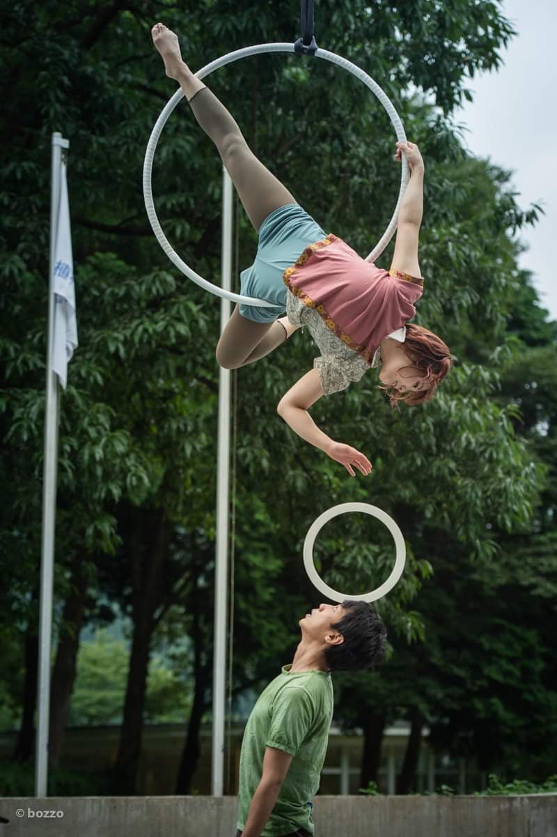 ジャグラーとエアリアルの異色ユニット。現代サーカス集団・「ながめくらしつ」演出家としても高い評価のジャグラー目黒陽介とエアリアルアーティスト長谷川愛実による異色ユニット。地上と空中を舞台に繰り広げる情熱的なパフォーマンスが魅力。
