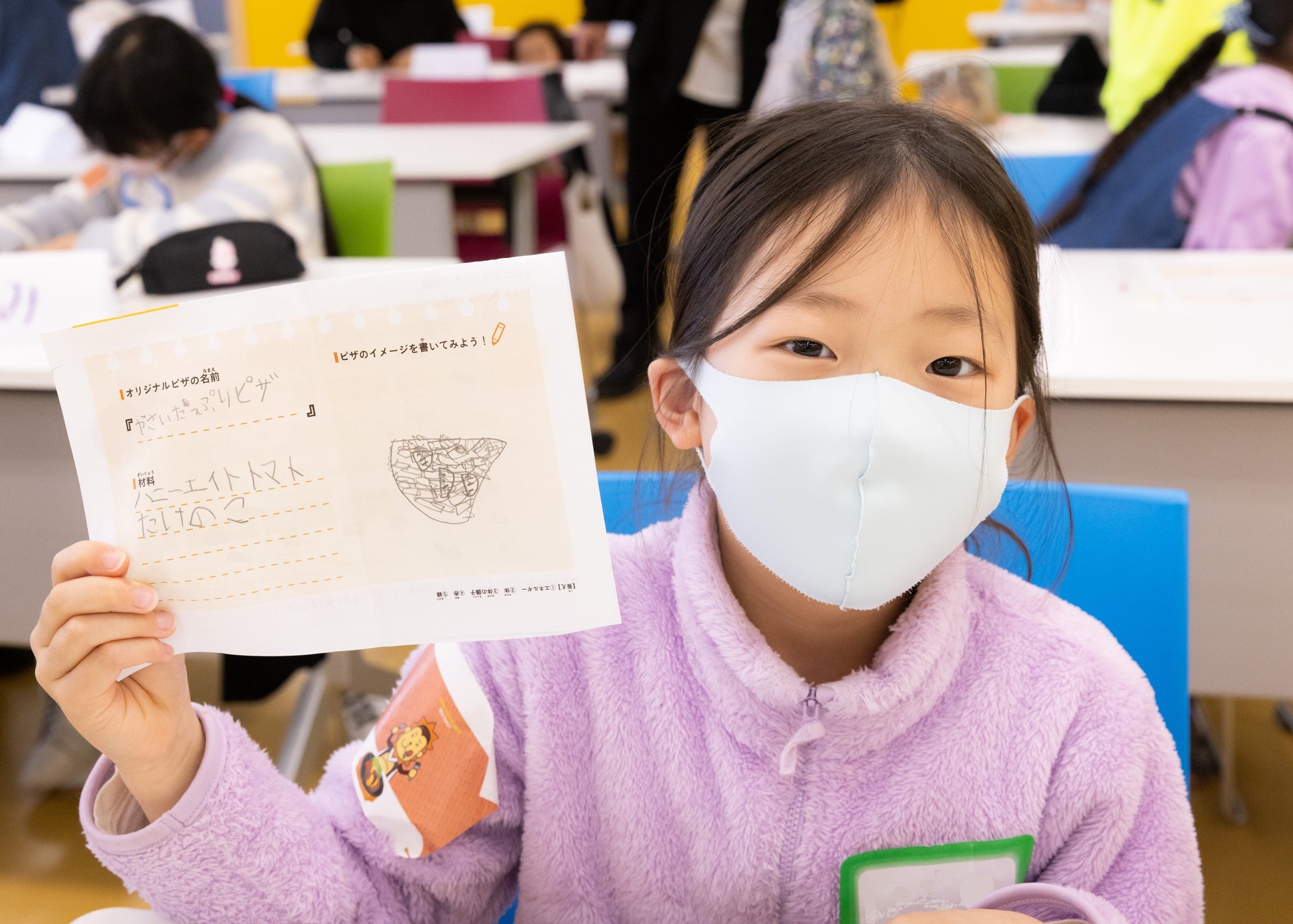 最後に、各自が考えたオリジナルピザの発表を行い、“健康ピザ”や“野菜たっぷりピザ”などアイデア溢れるピザが紹介されました。