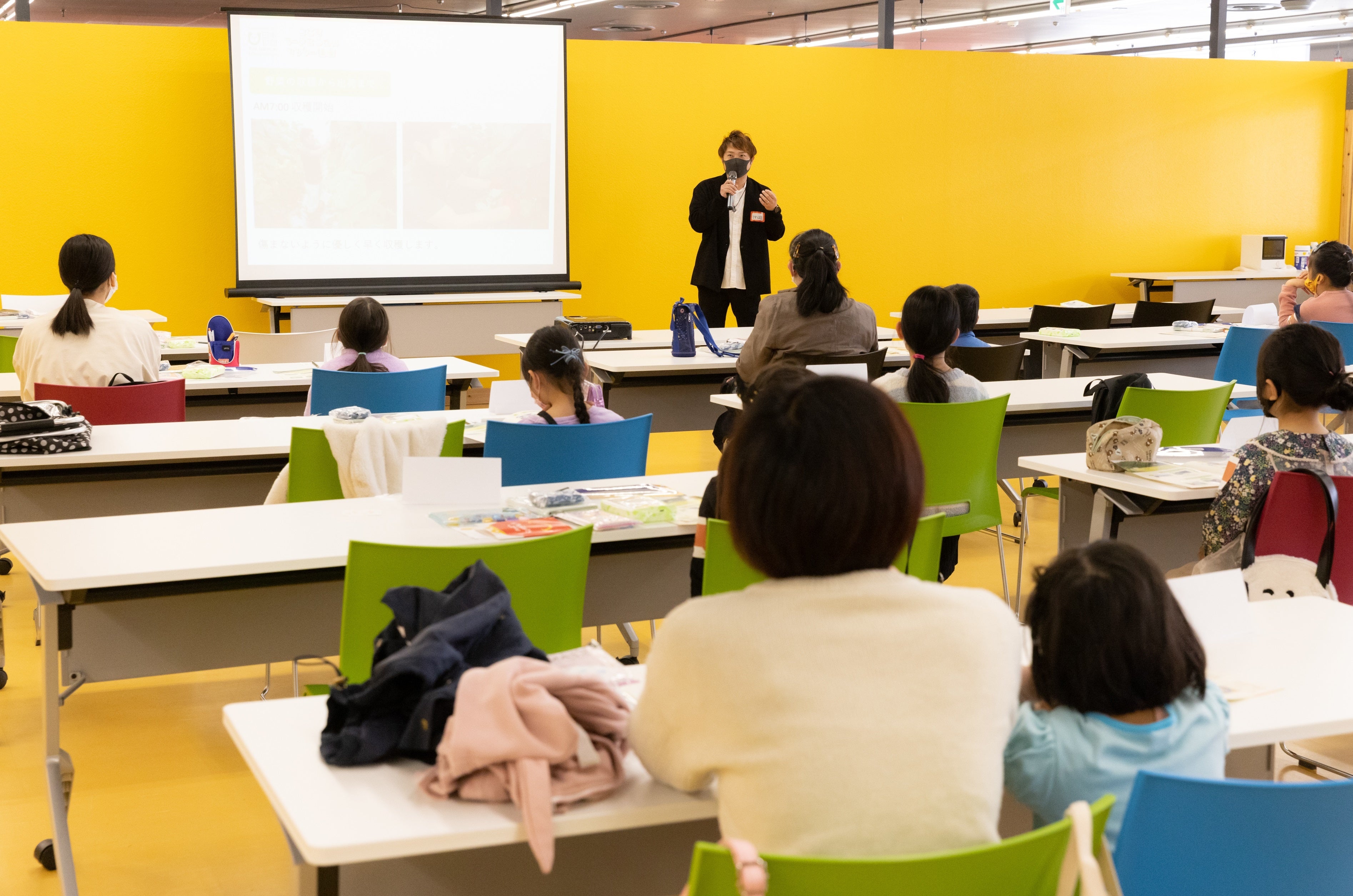 当日は、地域の農家の方やイズミヤ河内長野店のスタッフが先生となり、子どもたちに地域でとれた農産物の美味しさの秘密や農家の仕事、食品ロスの問題やイズミヤ河内長野店での取り組みなどを紹介しました。