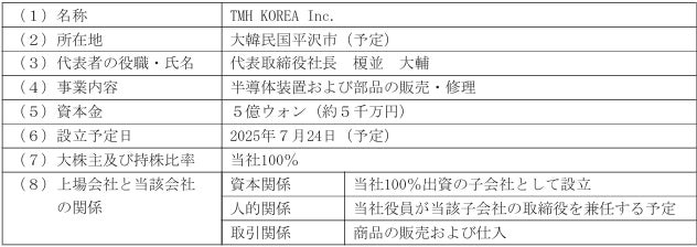 当社は、本日開催の取締役会において、大韓民国(以下「韓国」といいます。)に子会社を設立することを決議いたしましたので、下記の通りお知らせいたします。 なお、新会社は資本金額が当社資本金額の100分の10以上に相当するため、当社の特定子会社に該当しますので、併せてお知らせいたします。