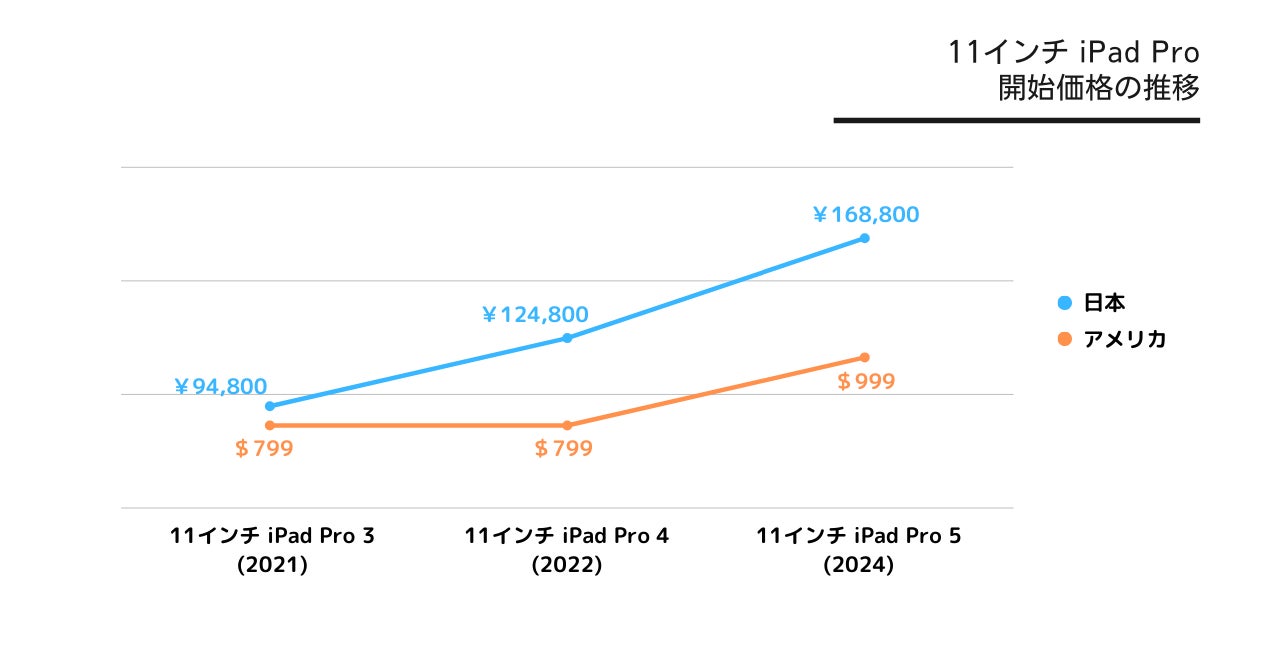 日本の11インチ iPad Proは3年で7万円以上価格が上昇