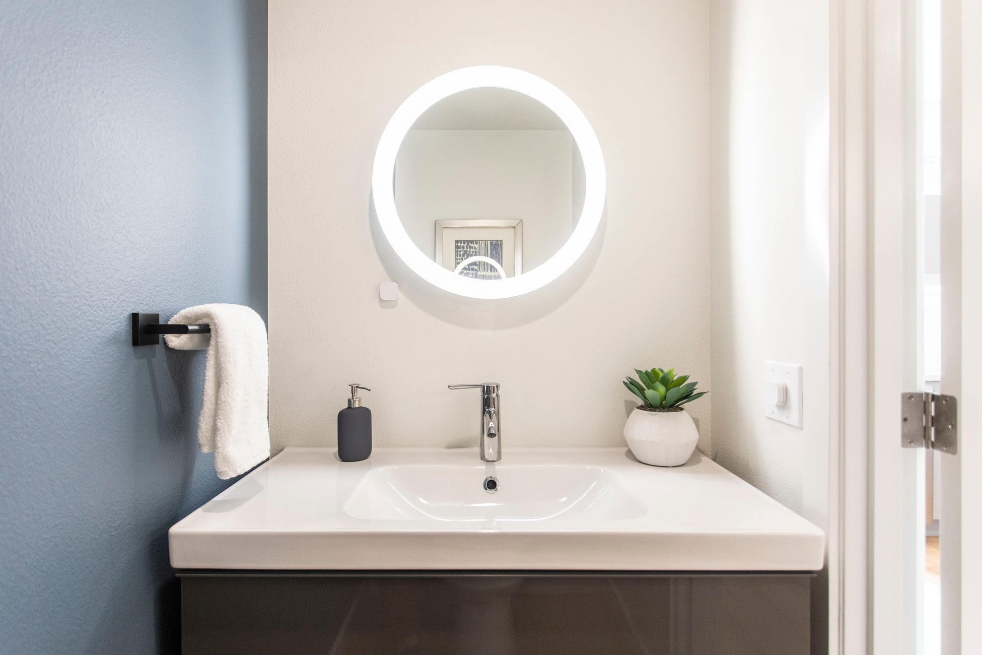 「HOMMA HAUS」の壁に設置されているのはON/OFFを制御するスイッチではなく、居住者の活動内容に応じて最適なシーンを演出できるボタンです。洗面台の「化粧アクティビティ」ボタンを押すと、洗面台や室内の照明が最大光量で白く点灯します。リビングの「リラックスアクティビティ」ボタンは、夕食後の穏やかな空間を一瞬で演出します。就寝時にベッドルームの「就寝アクティビティ」ボタンは、就寝中はその部屋のセンサーが無効化し、目を覚ましてアクティビティをキャンセルするまで、消灯状態を保ちます。