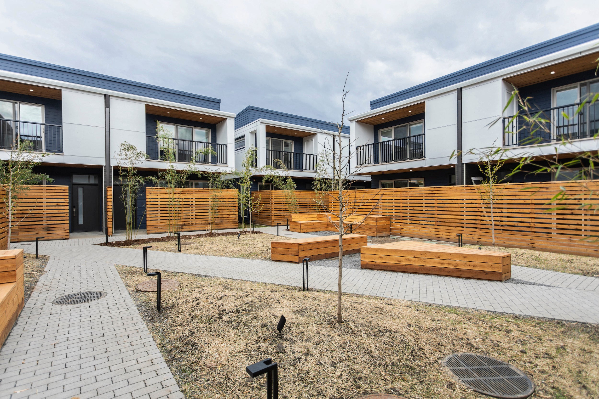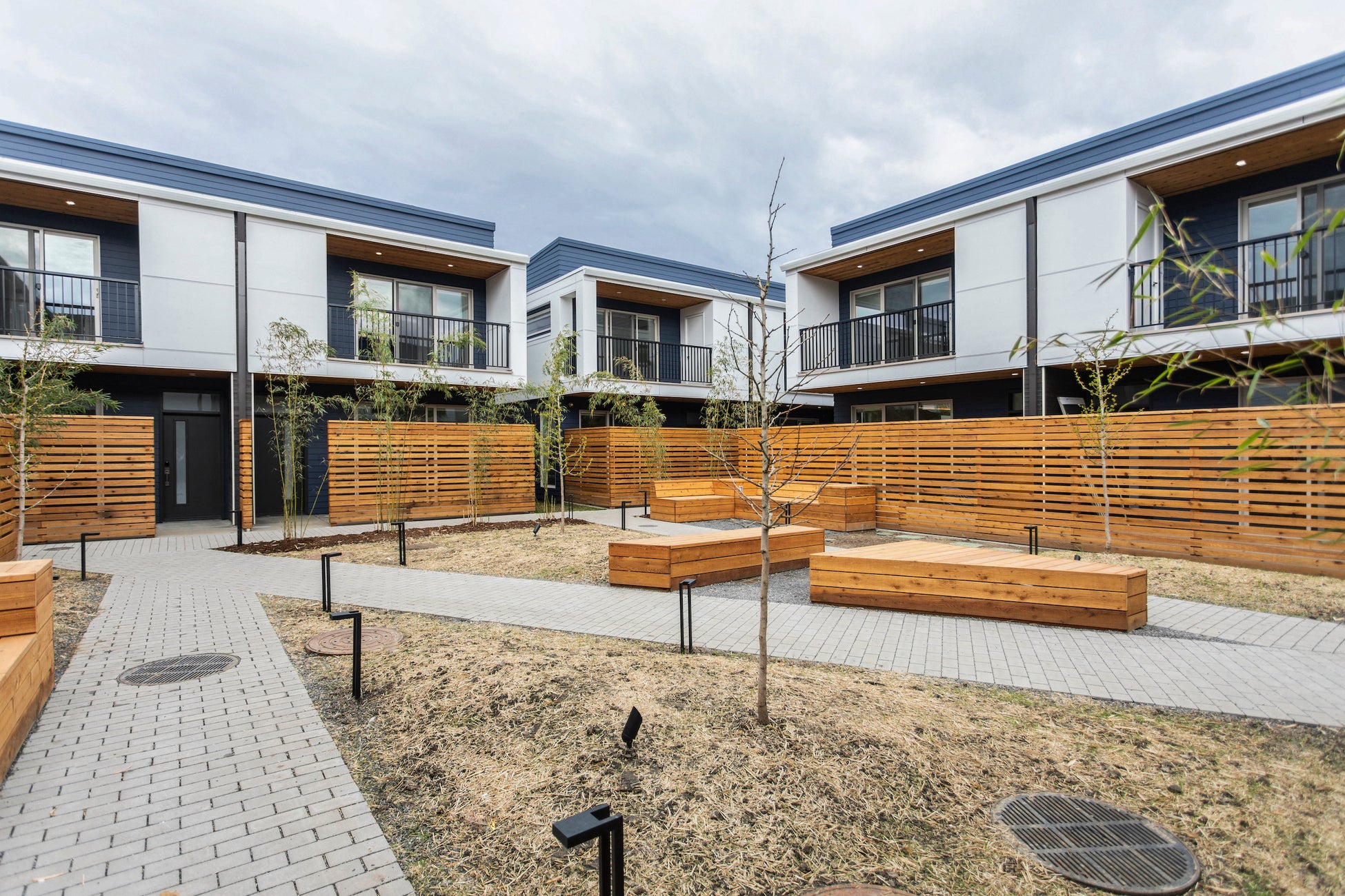 ポートランドの中心街であるダウンタウンから車で10分、自転車で30分の住宅街に位置する全18戸からなるタウンハウス型コミュニティ住宅。築100年を超える一戸建てが多く存在し自然豊かなマウント・テーバー公園を有するエリアとは対照的に、「都市型プレミアムコンパクト住宅」をコンセプトとするモダンなデザインが特徴です。