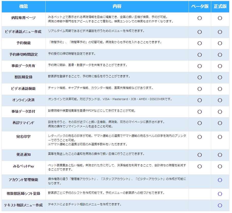 正式版へのリニューアルに伴って、動物病院様向けの料金体系の変更を行います。