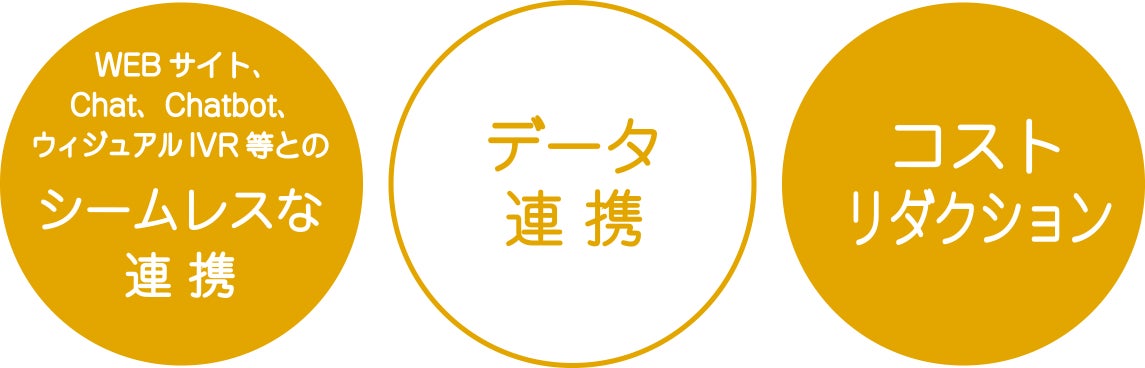 WEBサイト、chat、chatbot、ウィジュアルIVR、ネイティブAppなどからシームレスに連携し、会話を開始することが可能です。今まで「電話」へ誘導していた案内は不要となり、会話もWEBで完結することができます。