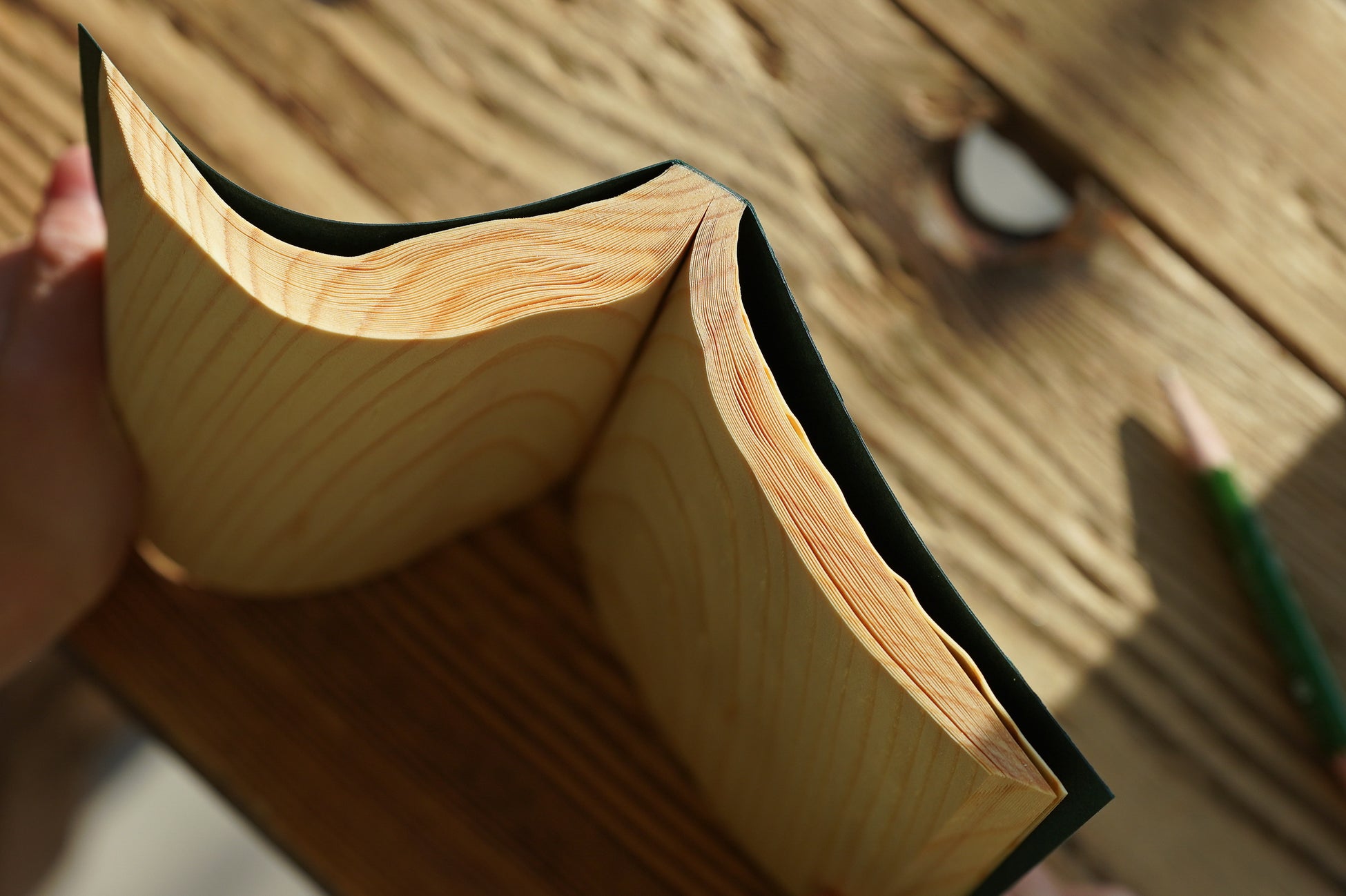 製本は、木のノートと同じく美篶堂さんにお願いをしました。通常の紙ではなく木を製本するのはものすごく大変で、今回も色々な苦労と工夫をしながら手製本で1つ1つ、丁寧に仕上げてくださいました。