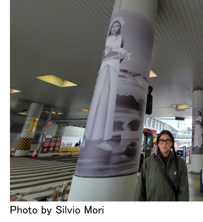 Hanna Lucatelli氏は今回の制作依頼について「これまで自分自身も日本文化を学んでおり、今回参加させていただきすごく幸運なことと思っています。公的な機関がストリートアートに価値を見出していただいていることがとてもうれしく思います。」とコメント。また Hanna Lucatelli氏は女性をモチーフに「ケア」をすることをテーマに扱っており、今回の制作について「シブヤ・アロープロジェクトのテーマと自身のテーマが一致していると感じています。今回制作したアートは女性をいろんな向きで6人の女性を描くことで、女性が持つ多面性を表現しました。」とコメントいただきました。