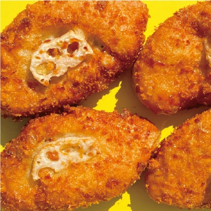 秋の恵みがギュッと詰まった、まるで「ワンランク上のコロッケ」のような揚げドーナツです。中は、バターで炒めた旬のきのこ3種、じゃがいも、れんこん、チーズがぎっしり。生地より具材が多い比率にすることで、より一層素材の味を楽しむことができます。また、少し粗めのパン粉をまぶし外はカリッと、中の具材も大きめカットでゴロッと、最後の一口まで飽きのこない食感をお楽しみいただけます。仕上げにさわやかな酸味のバルサミコソースで全体の味を引き締めました。