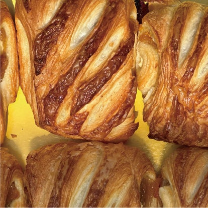 コンフィチュールとはジャムのようにとろとろになるまでよく煮詰めたもので、今回は日本の秋の味覚を彩る柿を使用しました。ブラウンシュガー・ラム酒・シナモンでじっくり煮込み、芳醇で深みのある味わいに仕上げています。バターの上品な香りとパリパリの食感がたまらないB²自慢のクロワッサン生地で包みこみ、濃厚な柿の甘味にはクリームチーズのまろやかな酸味を組み合わせました。