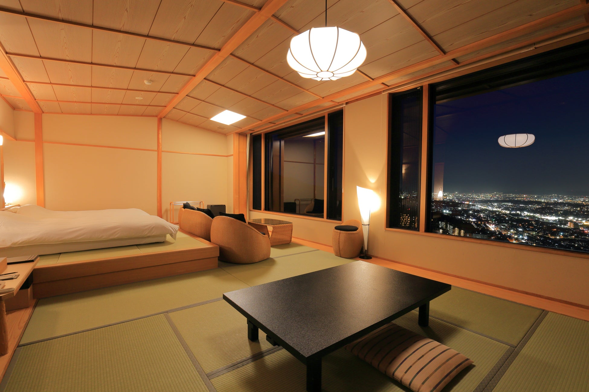 お部屋は地下に位置していますが、標高260mの山の斜面にあるため、他のお部屋と同様に大阪府内の壮大な景色をお楽しみいただけます。広々とした懐かしさを感じる和の空間で、ご家族やご友人と素敵な思い出を作り、特別な時間をお過ごしください。