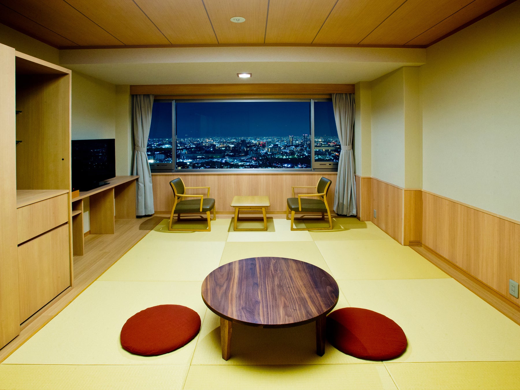 ベッドルームと和室の間に仕切りを設けず、開放感あふれる空間を提供しています。広大な窓から差し込む明るい陽光が客室を照らし、大阪の美しい景色を一望できます。青い空と緑豊かな風景が広がり、爽やかで心地よいひとときをお楽しみいただけます。夜になると、客室はロマンティックな雰囲気に包まれ、都会の夜景が広がります。光り輝く街の灯りが幻想的な光景を生み出し、特別な時間をさらに引き立てます。