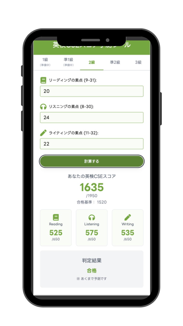 • 合否判定(CSEスコア算出)ツール:https://apps.studystudio.jp/cse-calculator