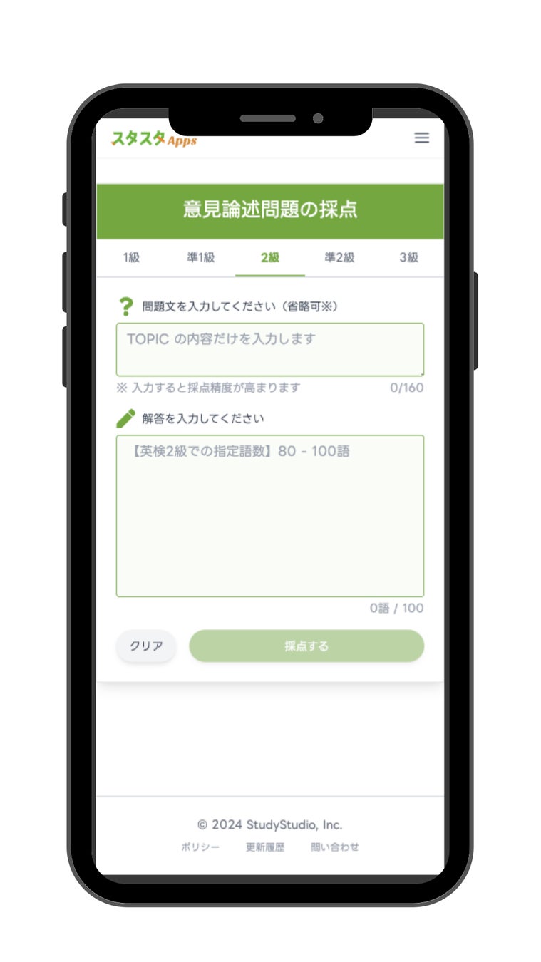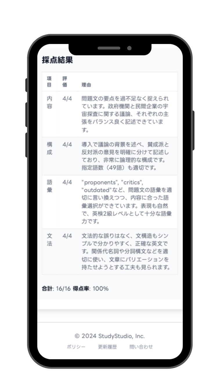 • 意見論述問題採点:https://apps.studystudio.jp/writing-review/essay-review