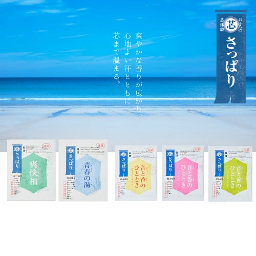 カラダとココロが、火照るとき。背筋を伸ばして、明日に備えたいとき。ざぶん!とおふろに飛び込みたいとき。爽やかな香りが広がり、心地よい汗とともに芯までさっぱりシリーズです。