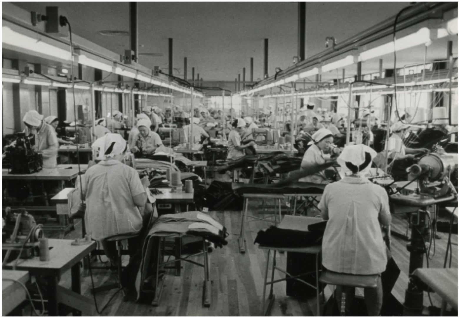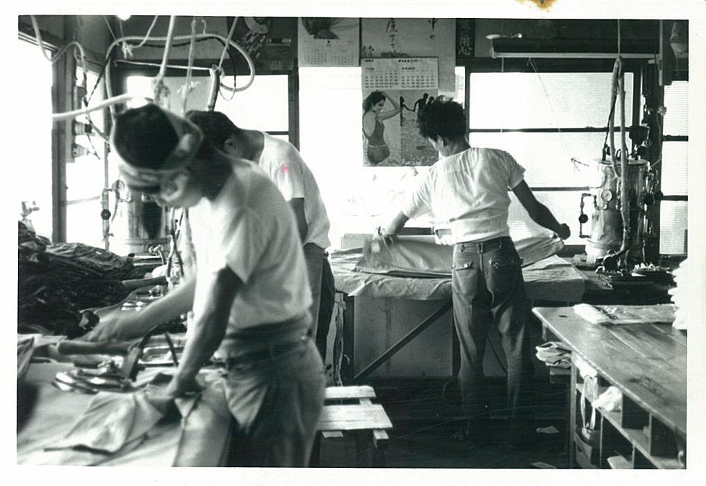 当時国産のデニム生地は存在しておらず、アメリカから生地を輸入して縫製するところからのスタートとなりました。