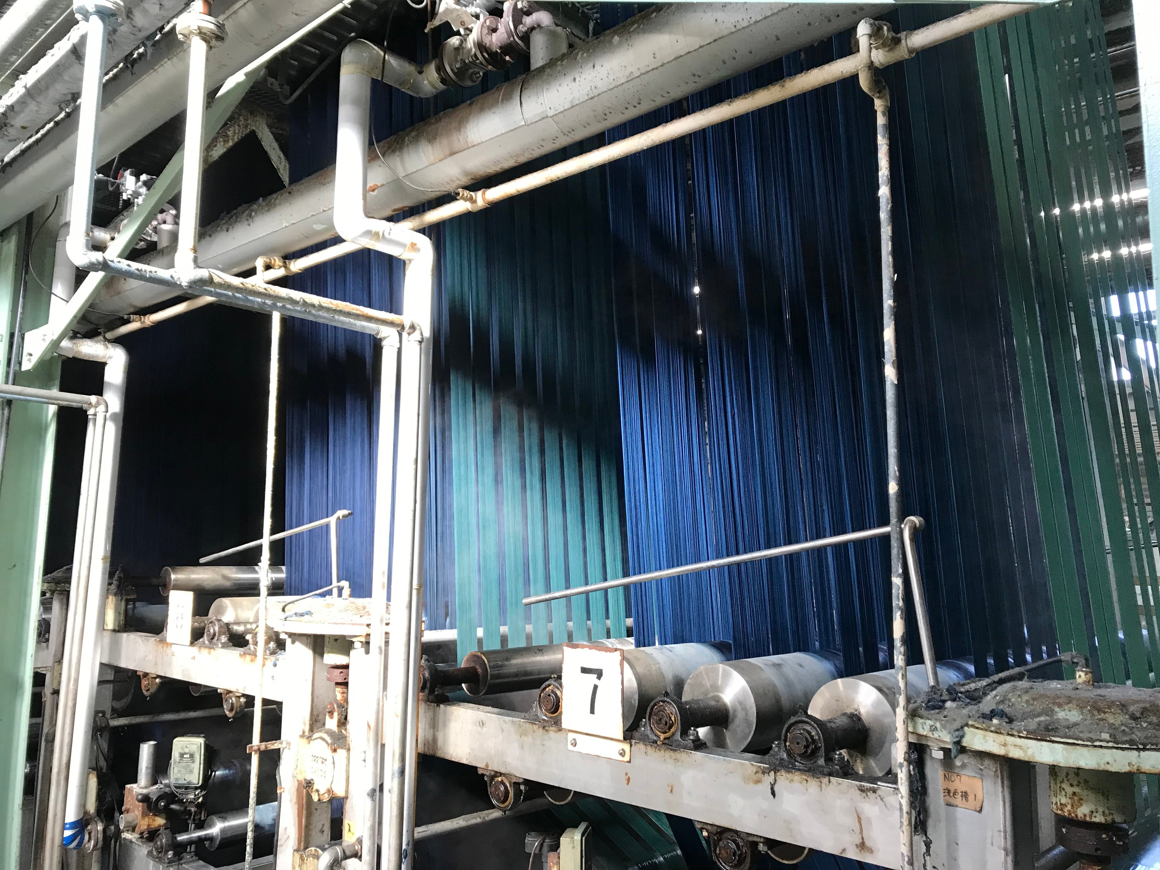 当時の日本にはデニムのような厚手の生地を加工する技術がなかった為、製造する機械を作ることから始まりました。一方、日本には元々藍染の文化があり、アメリカ式の染工技術を取り入れることでより高い品質の染め加工が出来るようになっていきます。