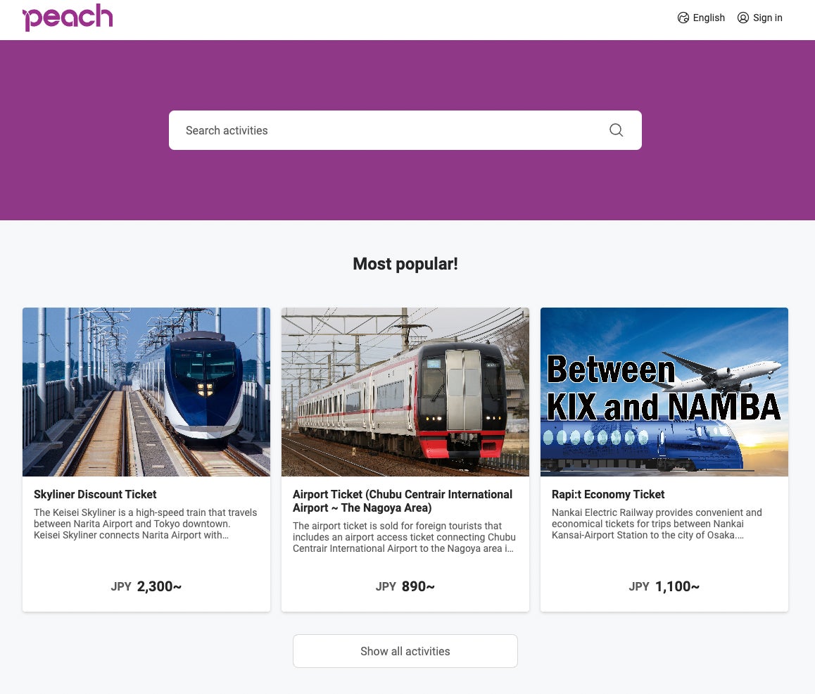 ・LINKTIVITYのEチケット販売ページとの連携により、Peachの多言語サイトに「エアポートアクセス」サービスを順次追加