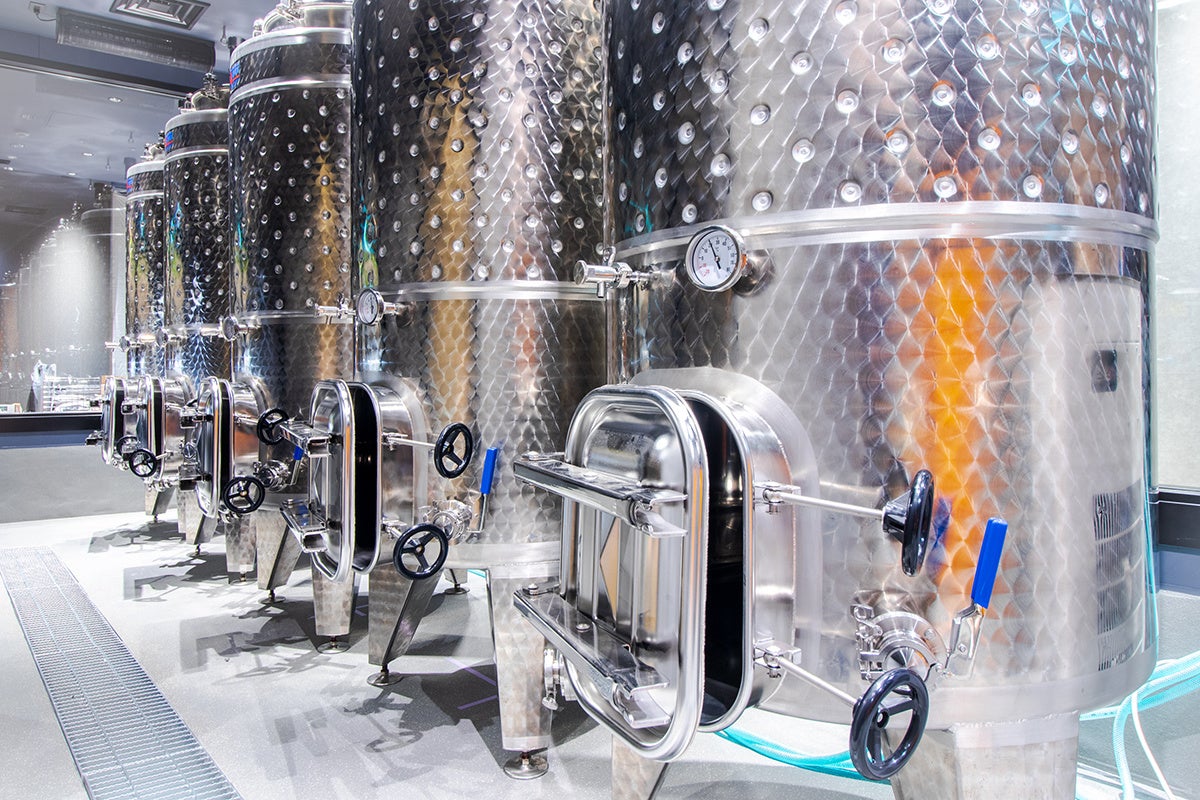 九州初!博多初!となる都市型ワインワイナリー。新型コロナの影響により、スロベニアから輸入のワイン醸造タンクの入港が遅れ、4月26日に設置完了しました。当初の計画から3ヶ月遅れの開業となり、6月から店内醸造を開始し9月に販売・提供を開始予定。