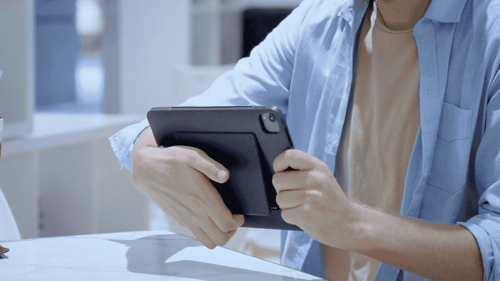 MOFT Float iPad用ケースは、ダブルヒンジ構造の採用でiPadを浮き上がらせ、MOFT特有のマルチアングルでiPadをお使いいただけます。