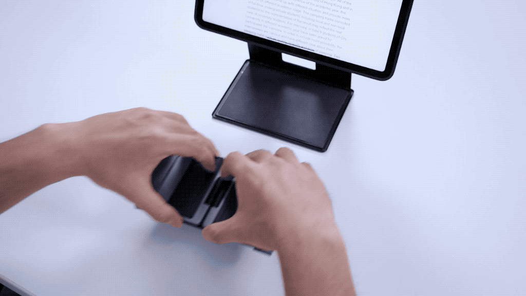 MOFT Floatは、家具や建築で用いられるダブルヒンジ構造により、スタンド部分がケースの内側に簡単に収納できるようになりました。