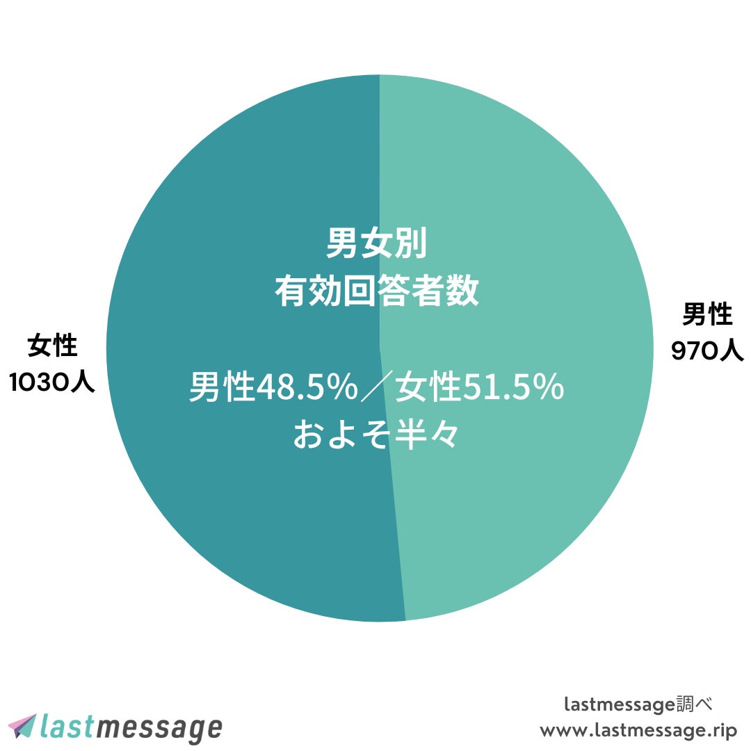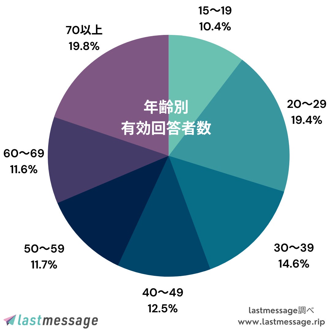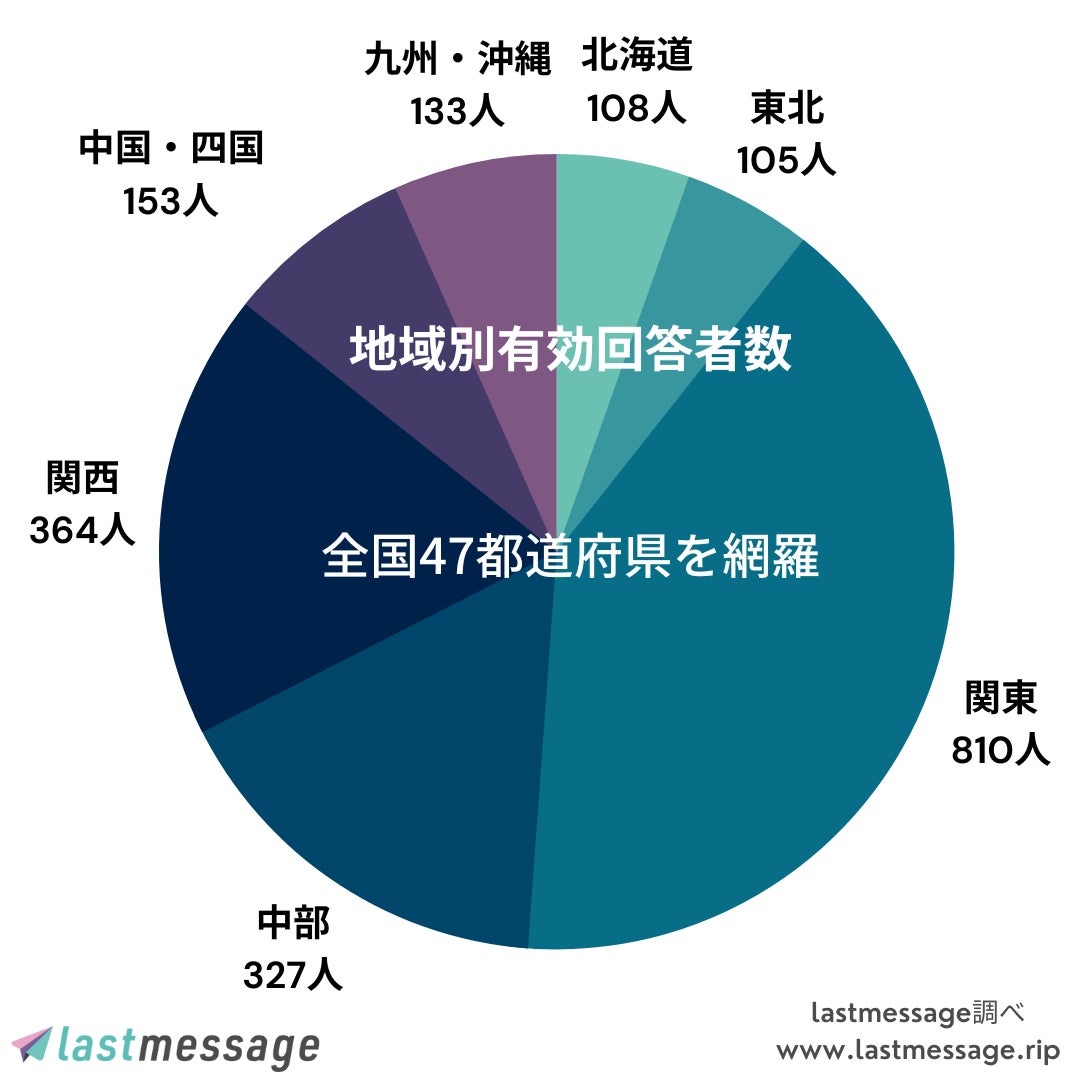 調査対象:全国47都道府県15歳以上の男女*本調査はlastmessageのサービス向上のため事前に予定した日程で行われました。特定の災害・事件等に由来するものではありません。
