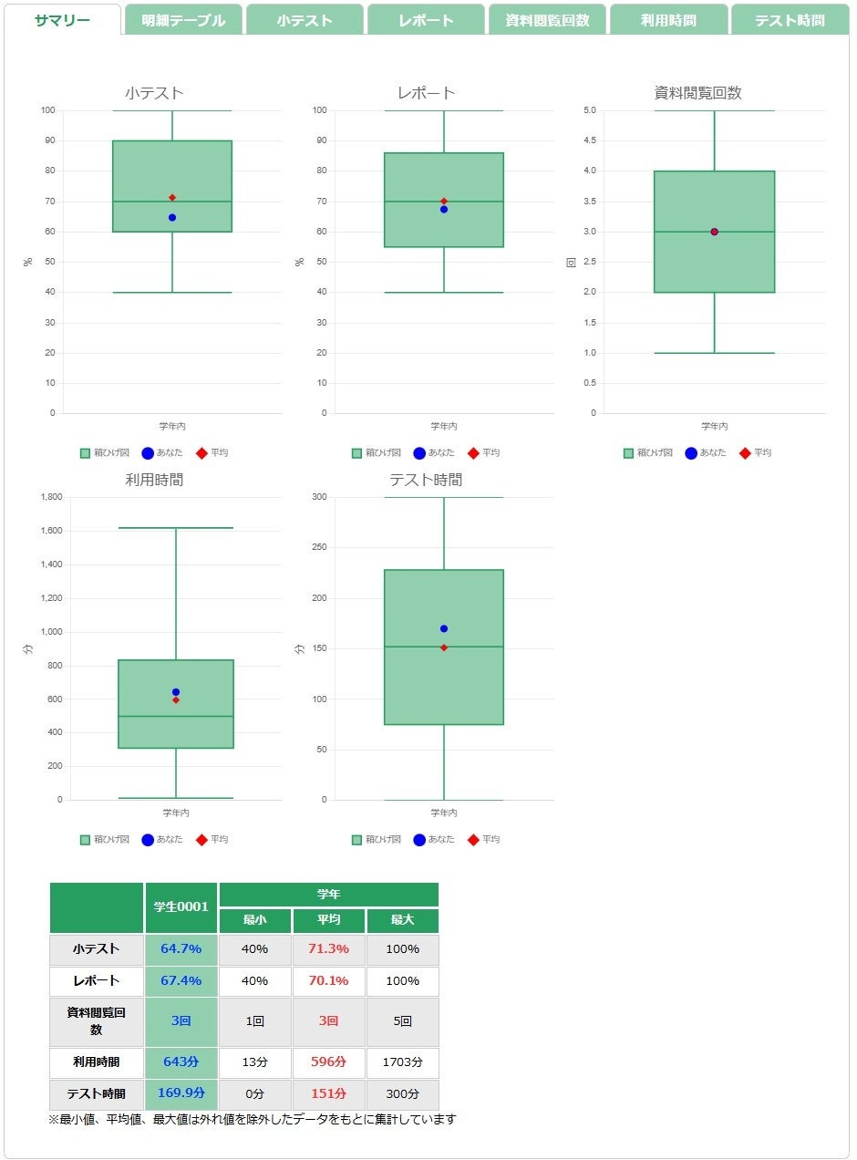 学習者は可視化されたデータから自身の特徴を把握し、自律的に学習に取り組むことが期待できます。