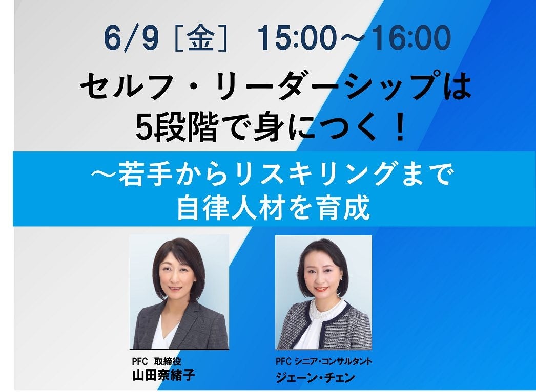 PFCではセルフ・リーダーシップを発揮できる自律人材の開発を5段階で行っています。各段階に必要な研修メニューも豊富にご用意しています。ウェビナーでは、セルフ・リーダーシップ開発の5段階モデルと、新たに開発した「セルフ・ディスカバリー研修」、その他人気の関連研修もご紹介いたします。