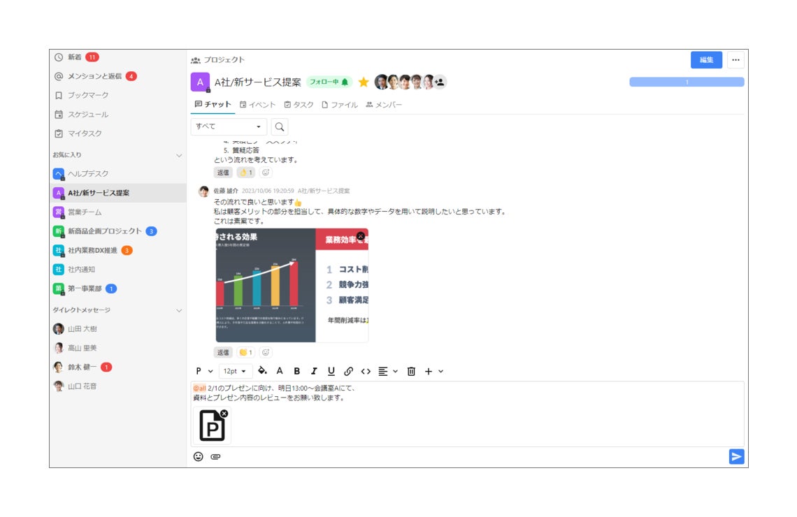 ビジネスチャット・タスク管理・Web会議・ファイル共有を統合、成果を最大限に引き出す革新的なサービス。