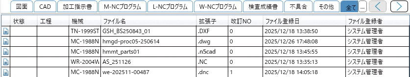 CADデータ、NCプログラム、加工指示書、PDF、製品画像など、加工現場で扱うさまざまなデータを「まとめて・整理・保存・活用」できるシステムとして、加工現場のデータ管理・活用を支援します。