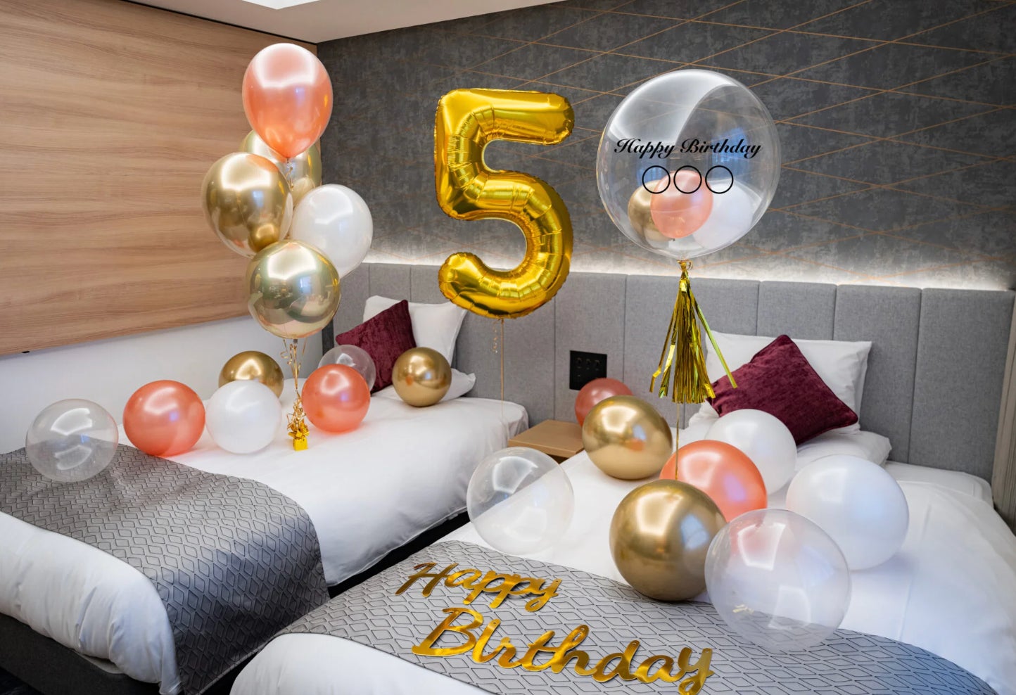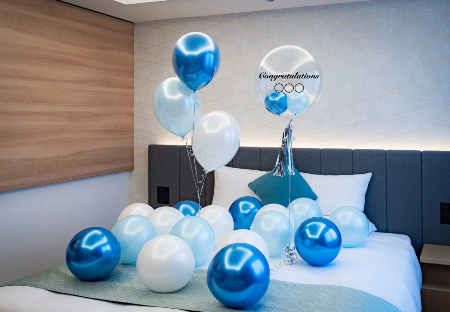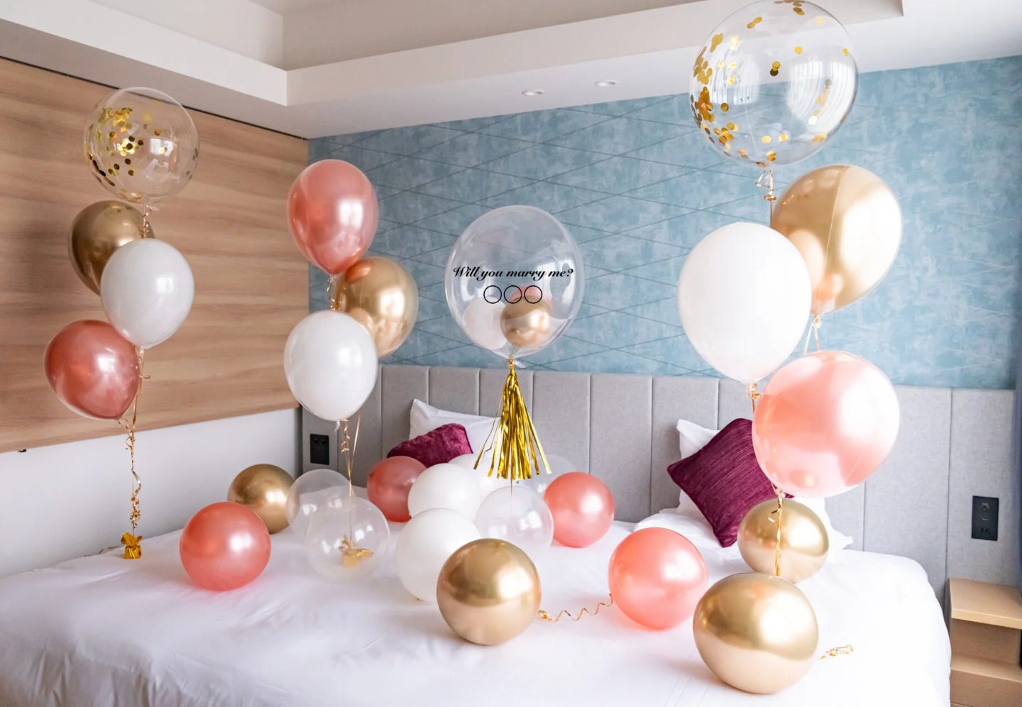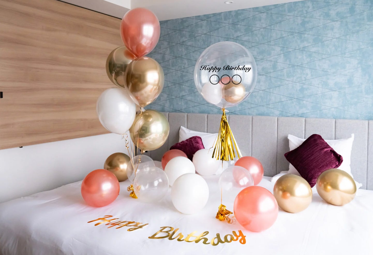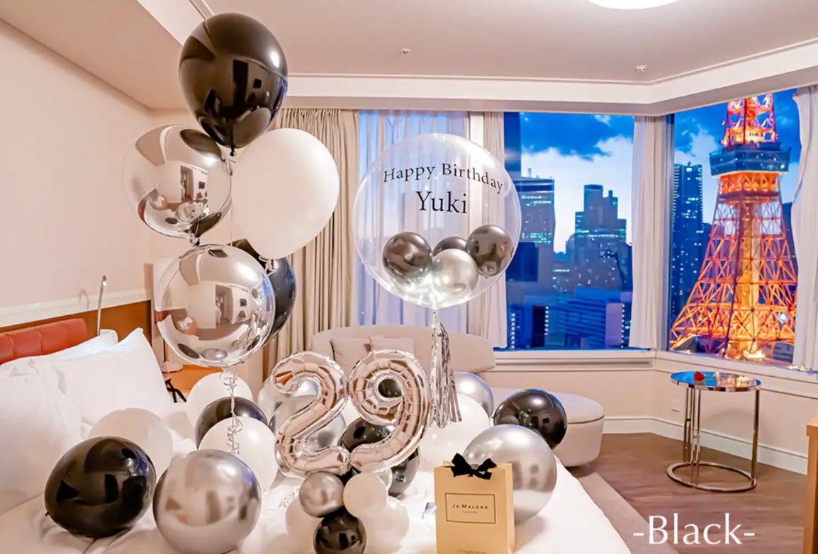フォトジェニックな空間を演出する、ベッドに広がるバルーン、そしてオリジナルメッセージを入れた特別なバルーンもご用意。大切なパートナーやご友人、ご家族とのお誕生日や記念日、女子会など特別な日のホテルステイをより楽しんでいただけるコラボプランで、思い出に残る1日をお過ごしください。