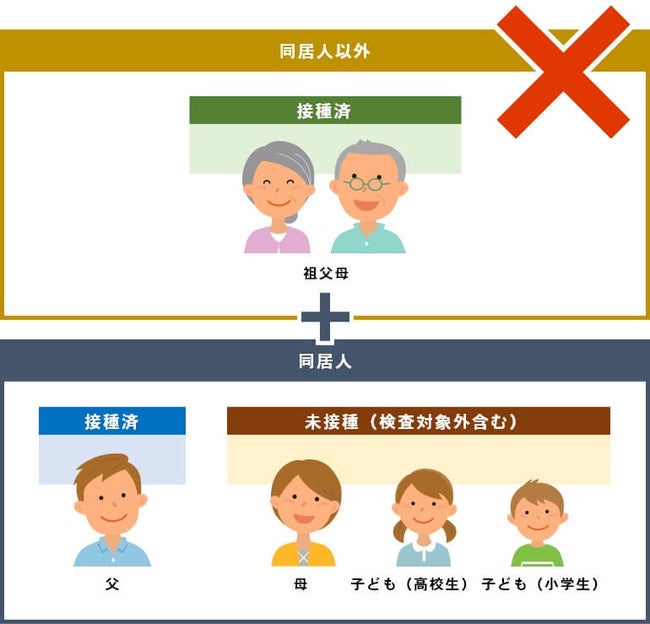 《キャンペーン対象外となる例…同居人以外(接種済)を含んだグループでの旅行の場合》