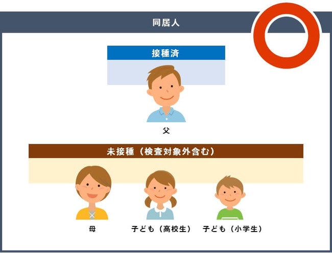 《キャンペーン対象となる例…父(接種済)、母・子供2人(未接種・検査対象外)の場合》