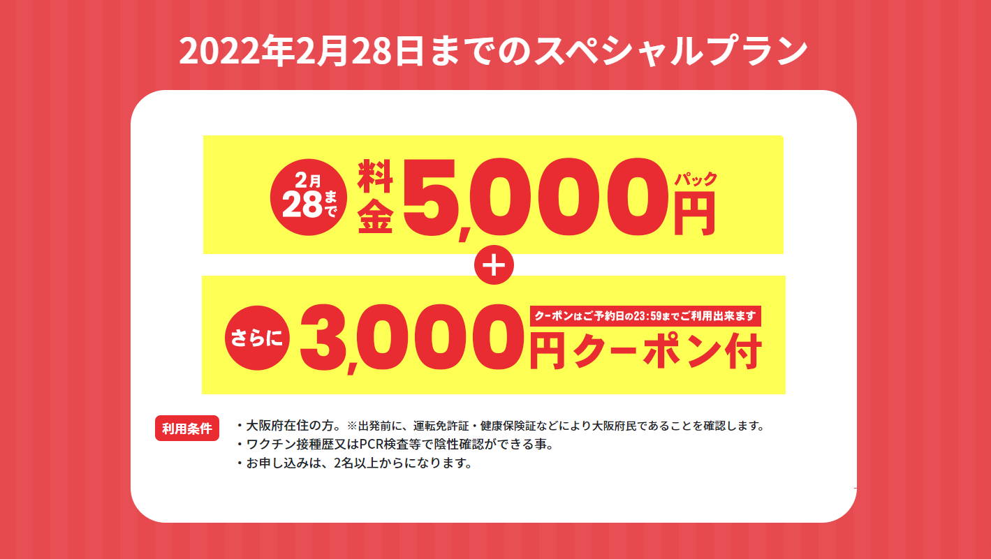 大阪府民限定です! 職場の仲間・お友達同士・ファミリーの皆様にご利用いただけます。