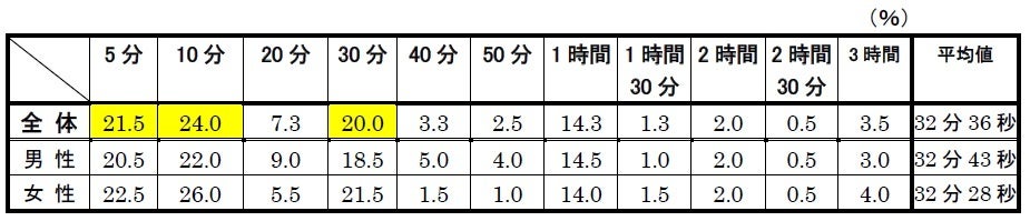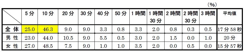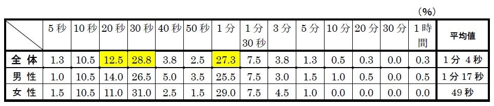 ◆よく使うあの一言の、時間の目安は?