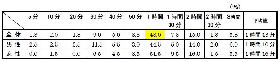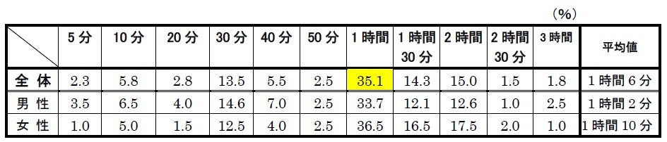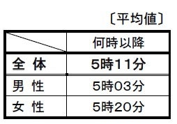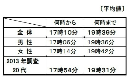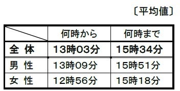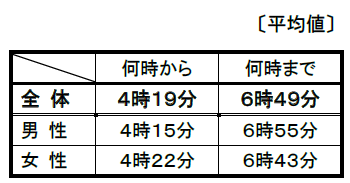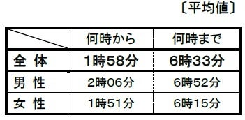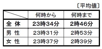 ※表の数値は、回答項目(「何時から」、「何時まで」、「何時以降/頃」)それぞれの平均時間です。