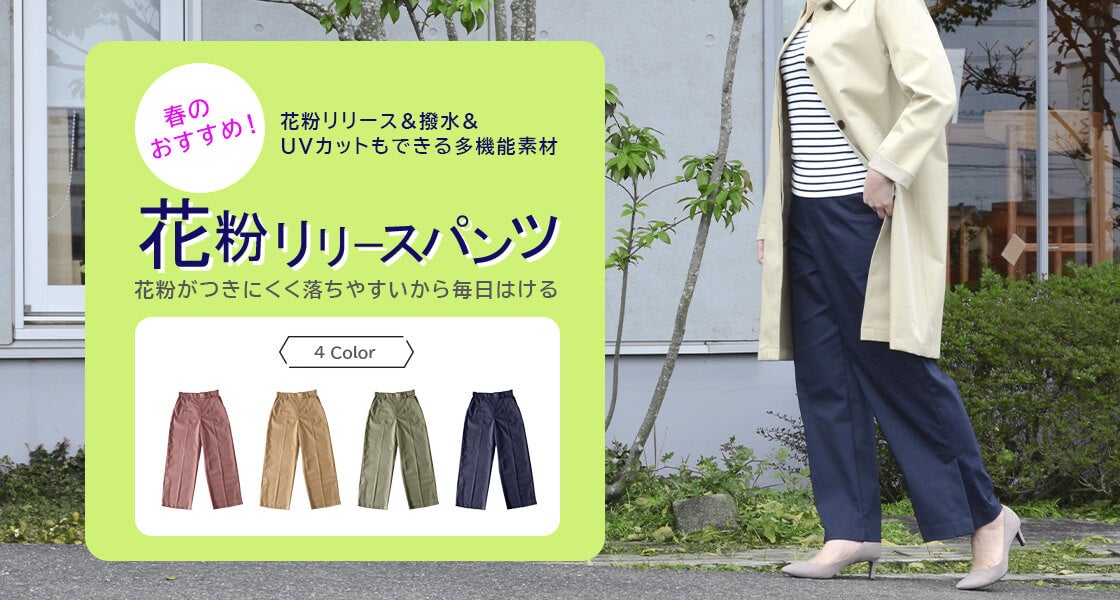 婦人服企画製造販売のアパレルアイ 衣服に花粉が付着しにくく、付着しても落ちやすい「花粉リリースパンツ」を発売