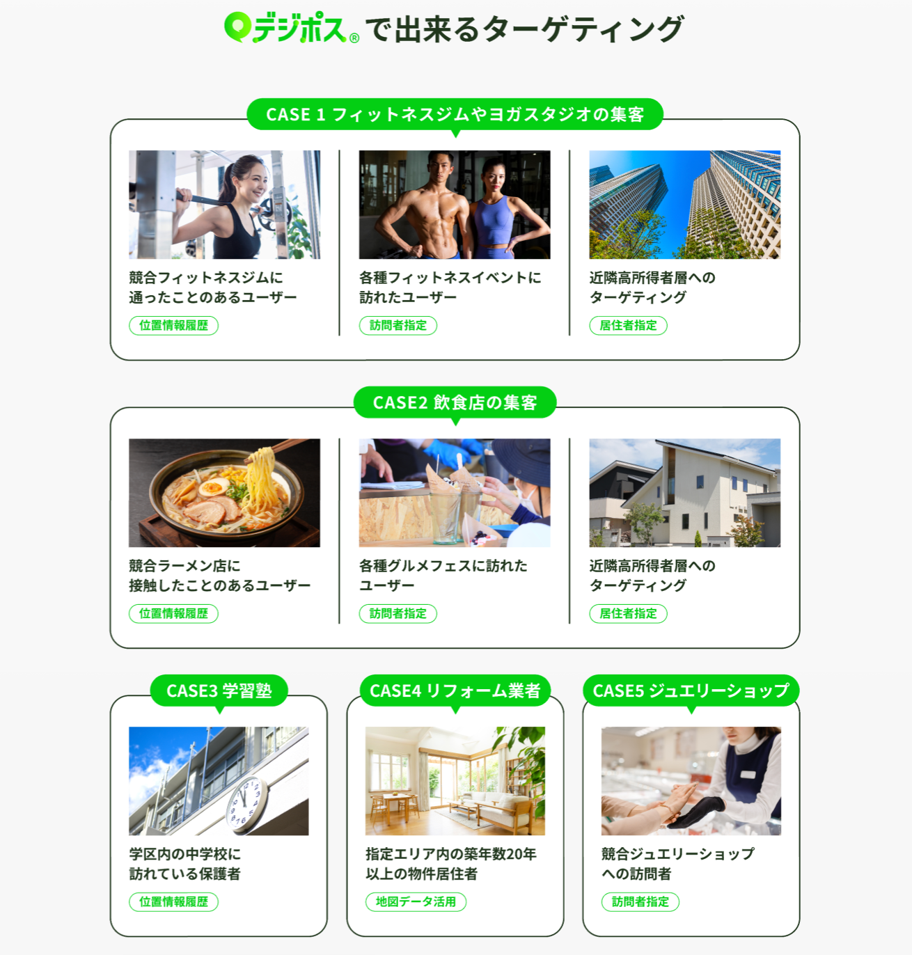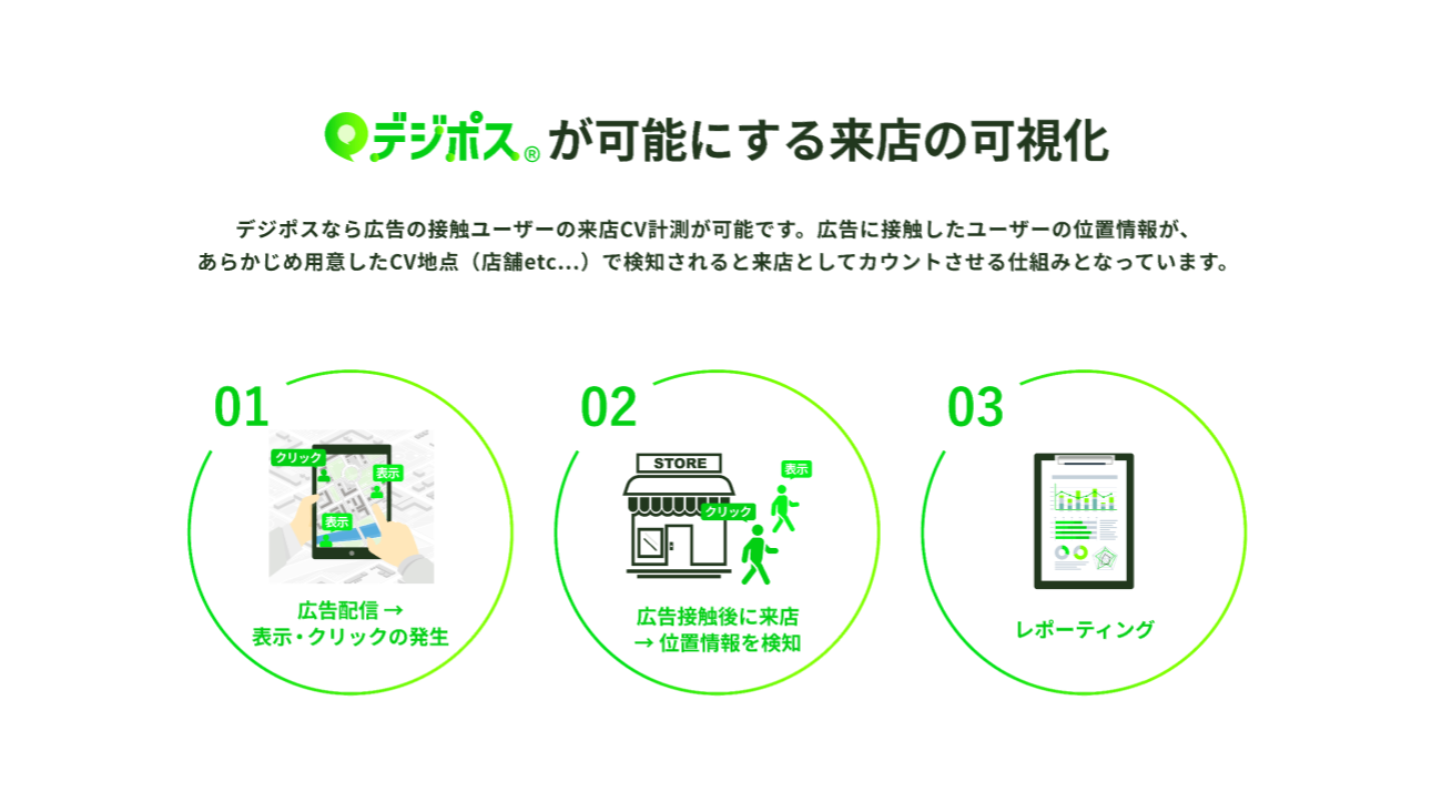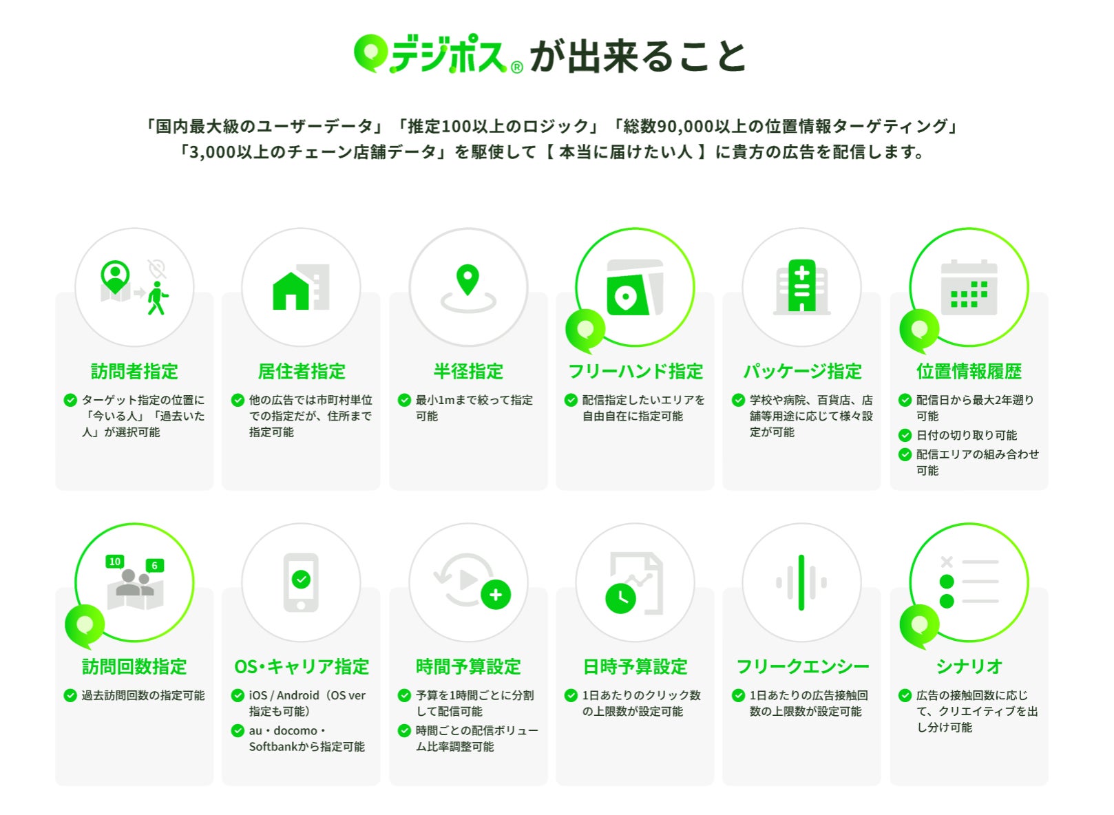 デジポスとはGPSマーケティング広告(位置情報広告)で、みなさんが普段お使いのスマートフォンの位置情報を用いてターゲティングを行う広告です。