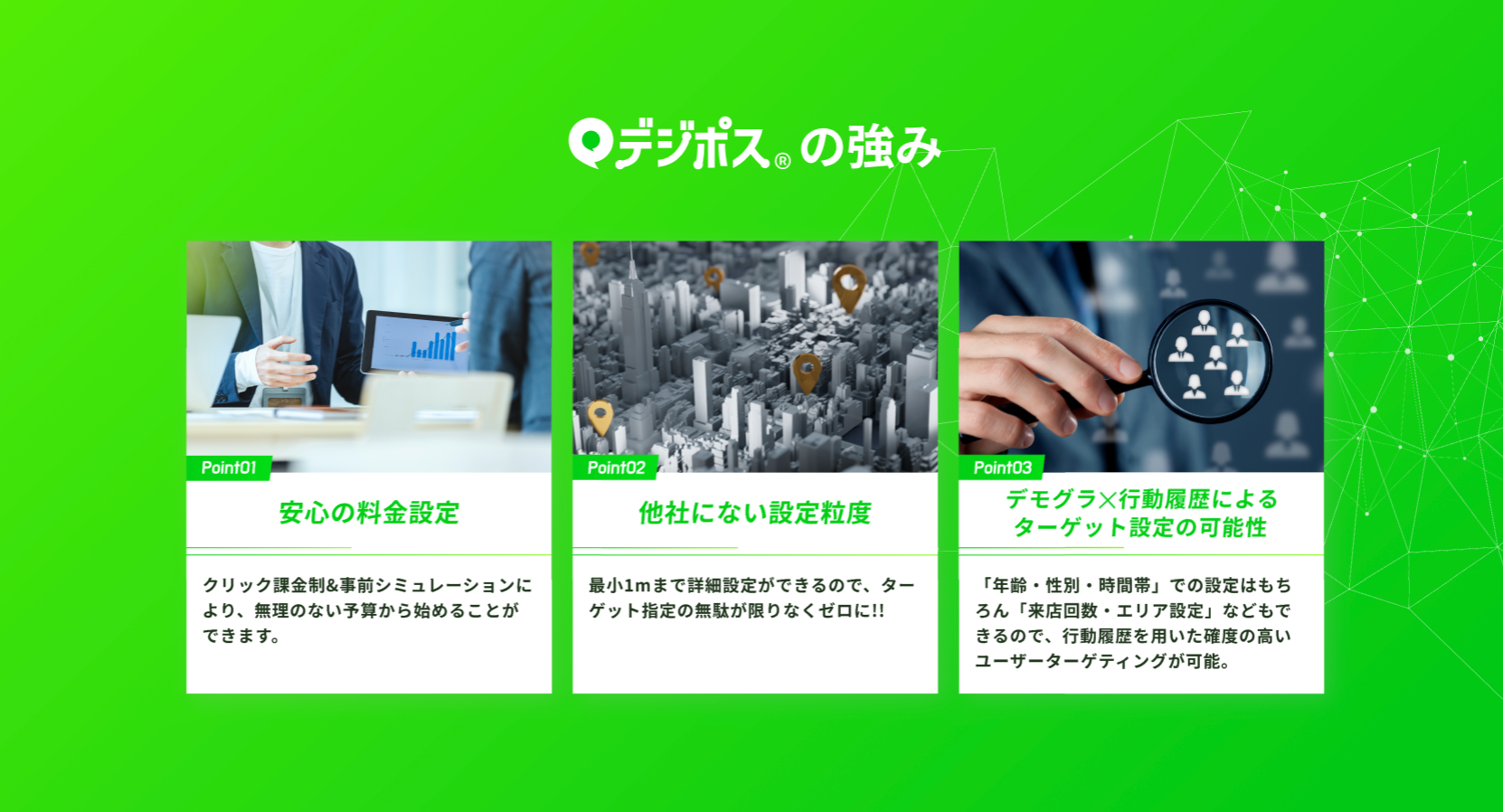 2.GPSを駆使するから無駄なく【効率的に】ターゲティング設定が可能。