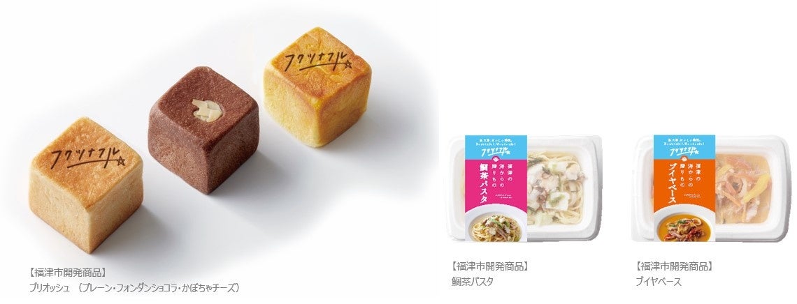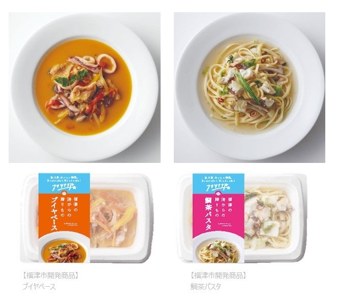 地元福津で愛されるレストラン「ぶどうの樹」とコラボし開発した「福津の海からの贈り物」ブイヤベース・鯛茶漬けパスタ、福津産野菜を使ったブリオッシュを初めて販売いたします。