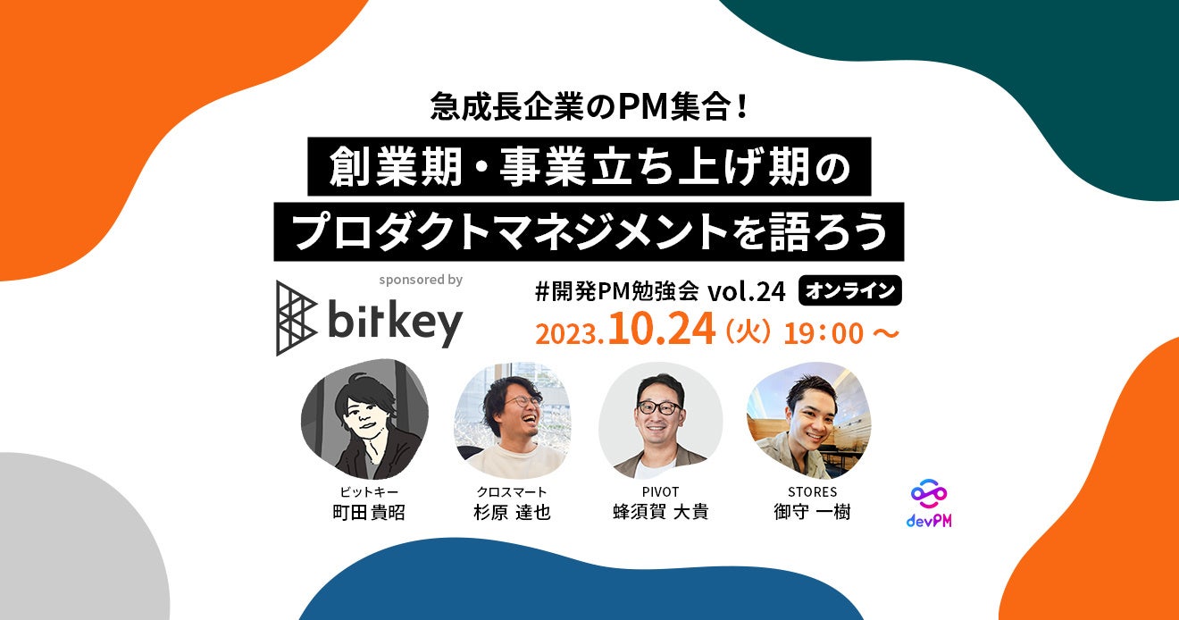 2023年10月24日(火)に開催する24回目の開発PM勉強会では、株式会社ビットキーの協賛により、創業期・事業立ち上げ期にプロダクト開発に携わってきたプロダクトマネージャーが集まりトークイベントを行います。