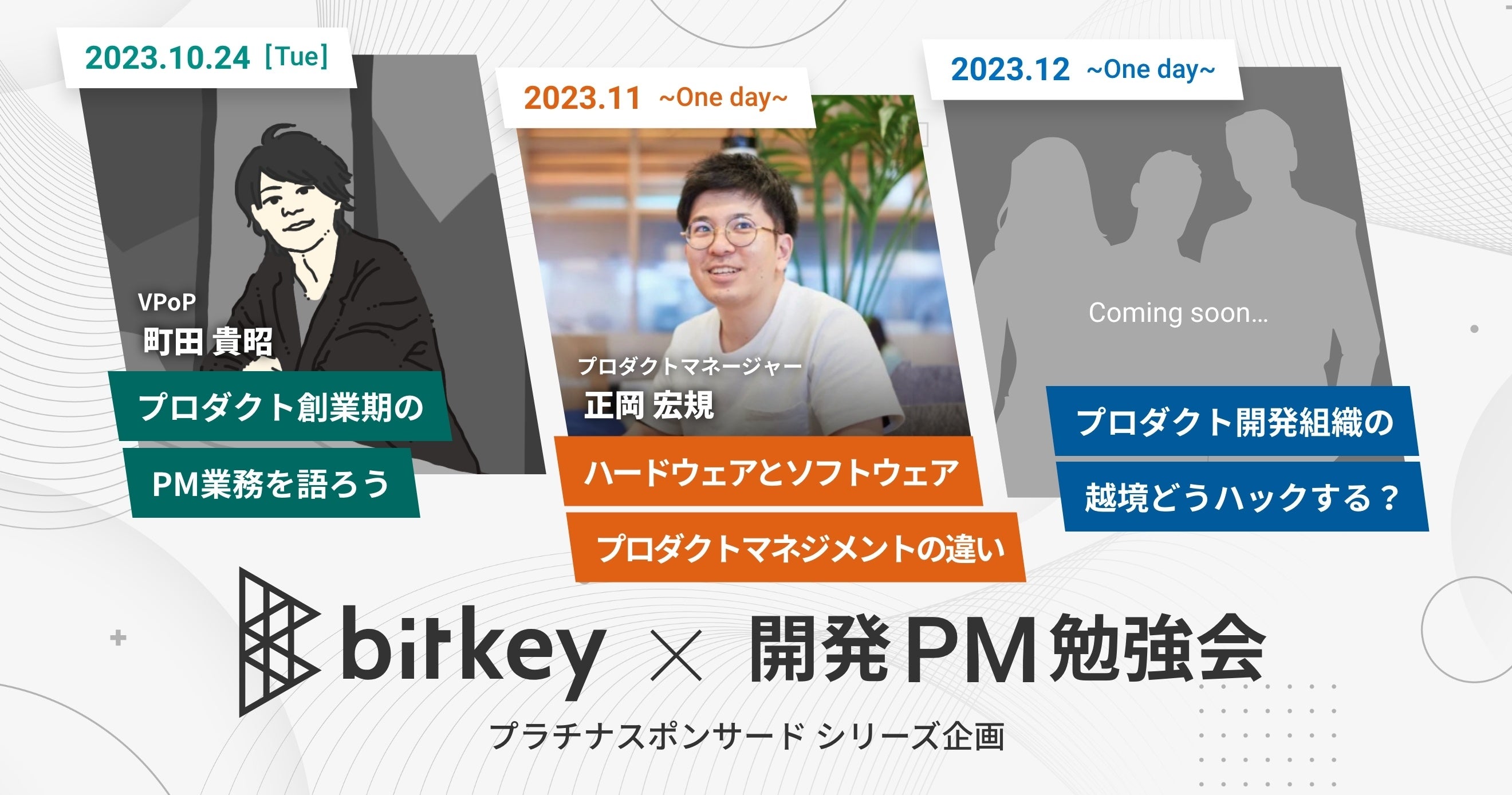 開発PM勉強会としては、初のプラチナスポンサーとなる株式会社ビットキーと共に、10月から12月まで、3回に渡ってプロダクトマネージャー向けシリーズ企画を実施します。
