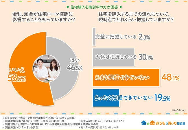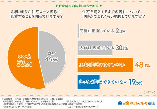 「住宅を購入するまでの流れについて、現時点でどれくらい把握していますか?」と質問したところ、7割近い方が『あまり把握できていない(48.1%)』『まったく把握できていない(19.5%)』と回答しました。