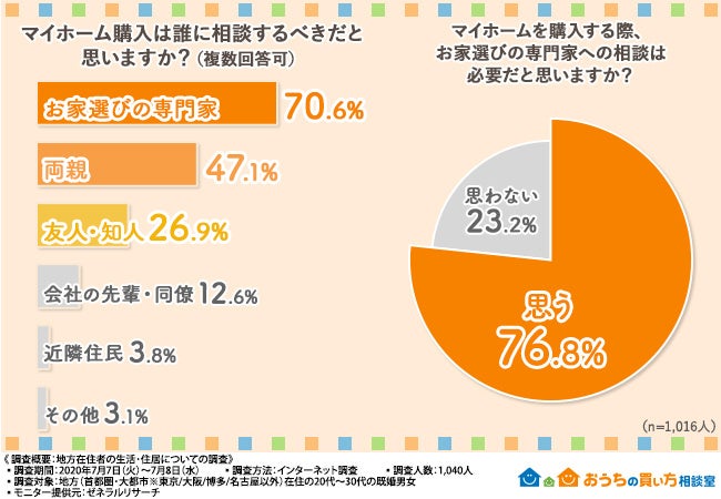 過去弊社が行った調査では、4人のうち3人がマイホーム購入時には「お家選びの専門家」へ相談するべきだと回答しております。