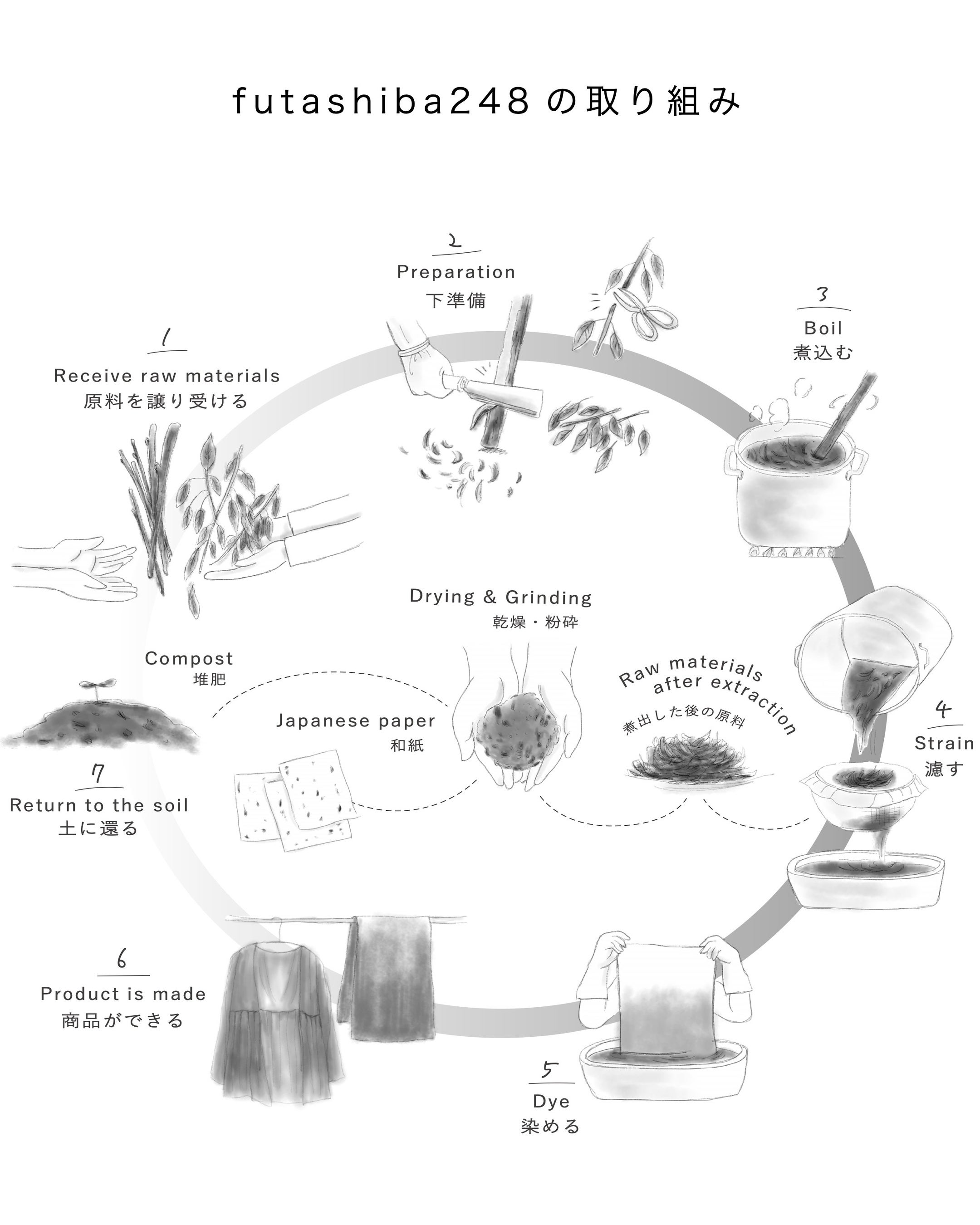 手作業の染色、茨城の伝統文化である手漉き和紙(西ノ内紙)、ニッチフレグランスを組み合わせ、