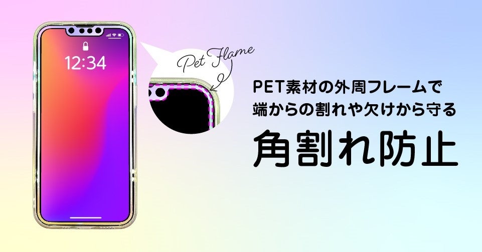 PET素材は外部からの衝撃に対して非常に強く、ガラスフィルムの破損を心配することなく、安心してご使用いただけます。