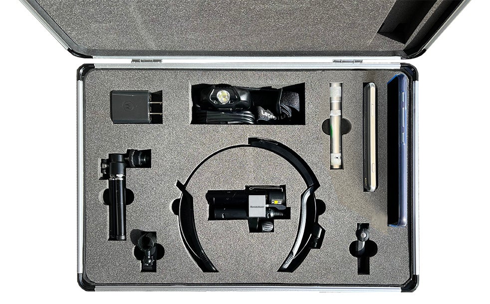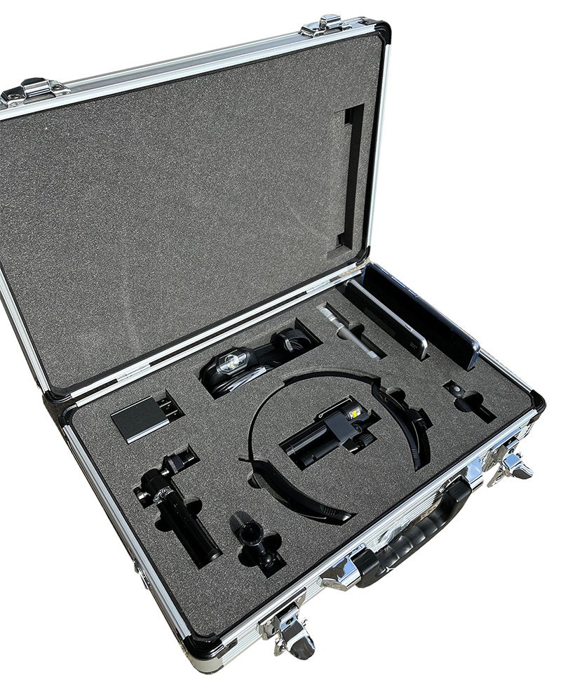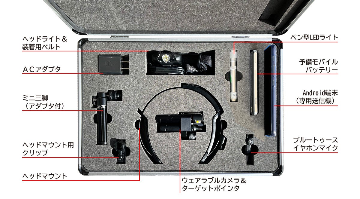 BCPパッケージは、従来のウェアラブルカメラ、通信機に加え LEDライトや予備充電器などを専用アタッシュケース(添付写真参照)に収納したものです。