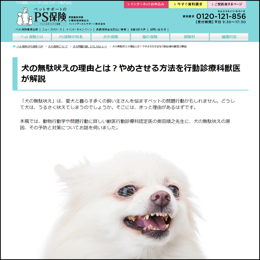 犬の問題行動「犬の無駄吠え」ウェブコンテンツ公開 ペット保険「PS保険」