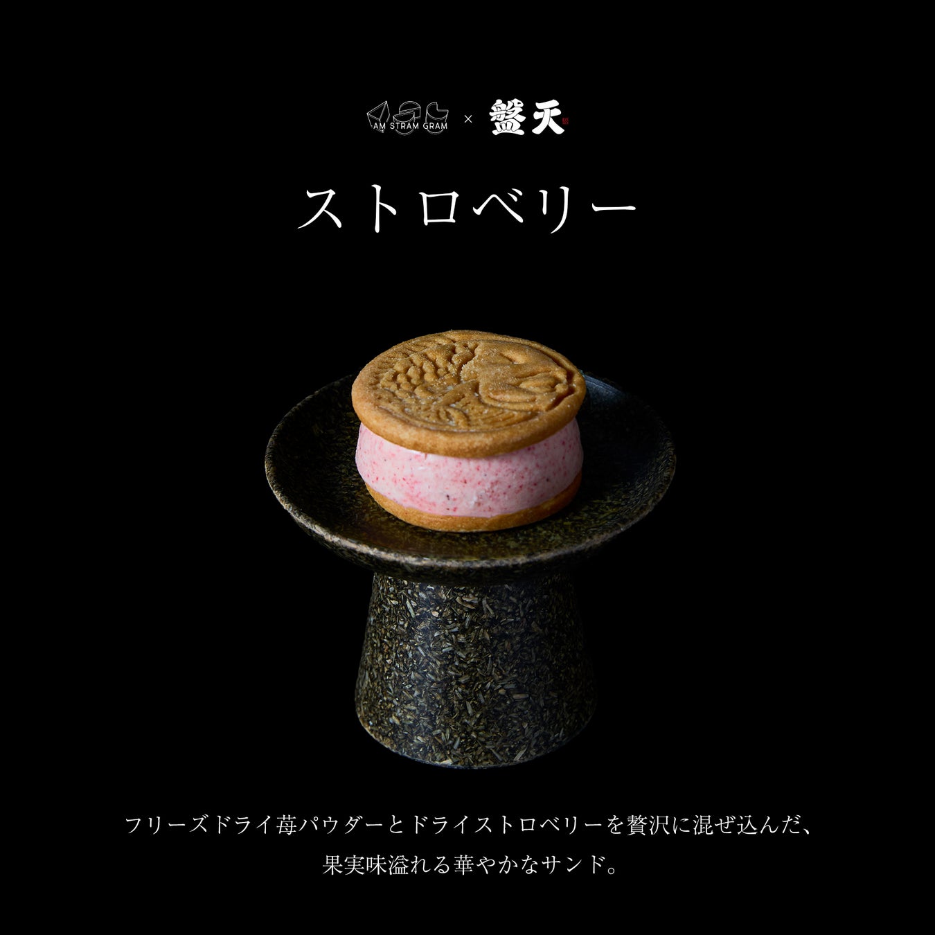 一般的なバターサンドで使用されるバタークリームではなく、タルト用に仕込んだカスタードクリームとバタークリームをブレンドした、濃厚かつ軽やかな「クレーム ムースリーヌ」を使用。 生地はAM STRAM GRAM自慢のシュクレ生地で、「鯛」のスタンプを押して焼き上げた特別仕様です。